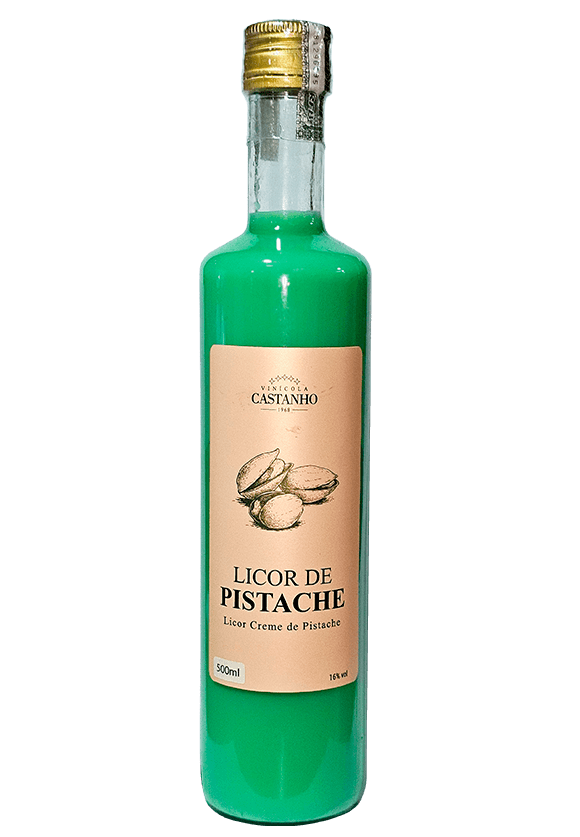 Licor creme de pistache. Bebida deliciosa provinda de um fruto energético, cultivado desde os tempos antigos dos hebreus. Sabor doce e teor alcoólico 16%. Ideal para sobremesas, como trufas e bombons, é bastante apreciada após as refeições.